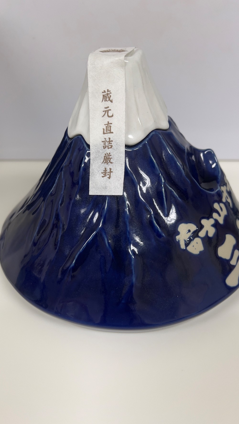 Sake wine container from Japan, shaped like Mr. Fuji. Porcelain in white and blue colors. (Sake not included.)