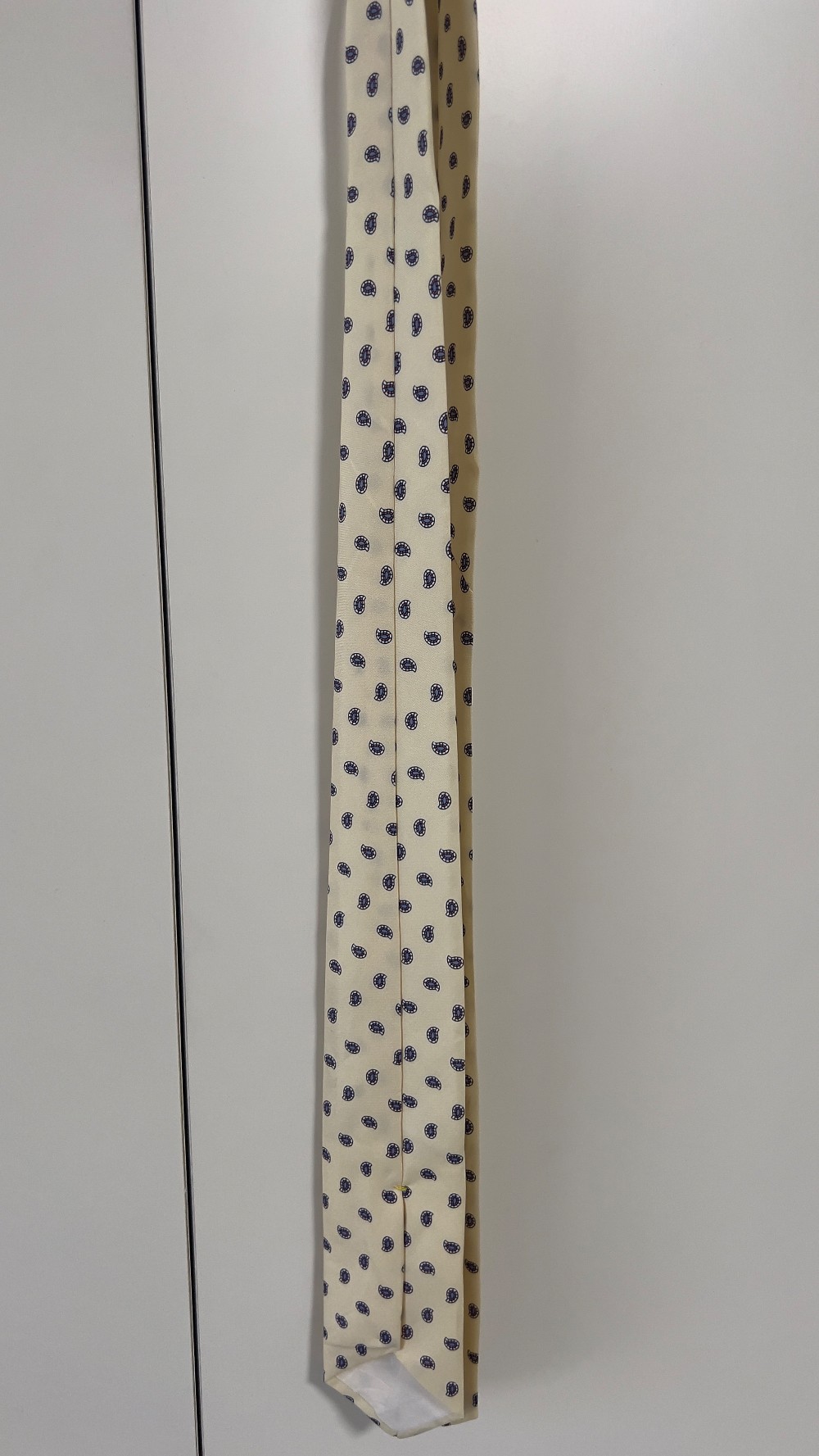 Kid's Necktie 1, 48 inches length, Yellow with blue and brown designs. Dry cleaned.