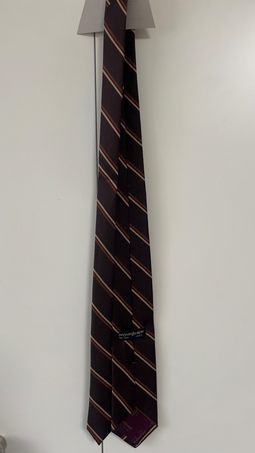 Men's necktie, YSL, Brown with stripes. Standard length 58". Dry clean and ready to wear.