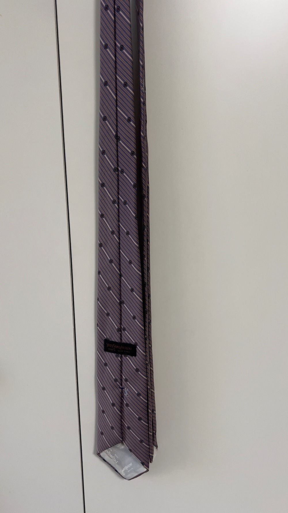 Men's Necktie 17, YSL, Multicolor stripes with small square designs