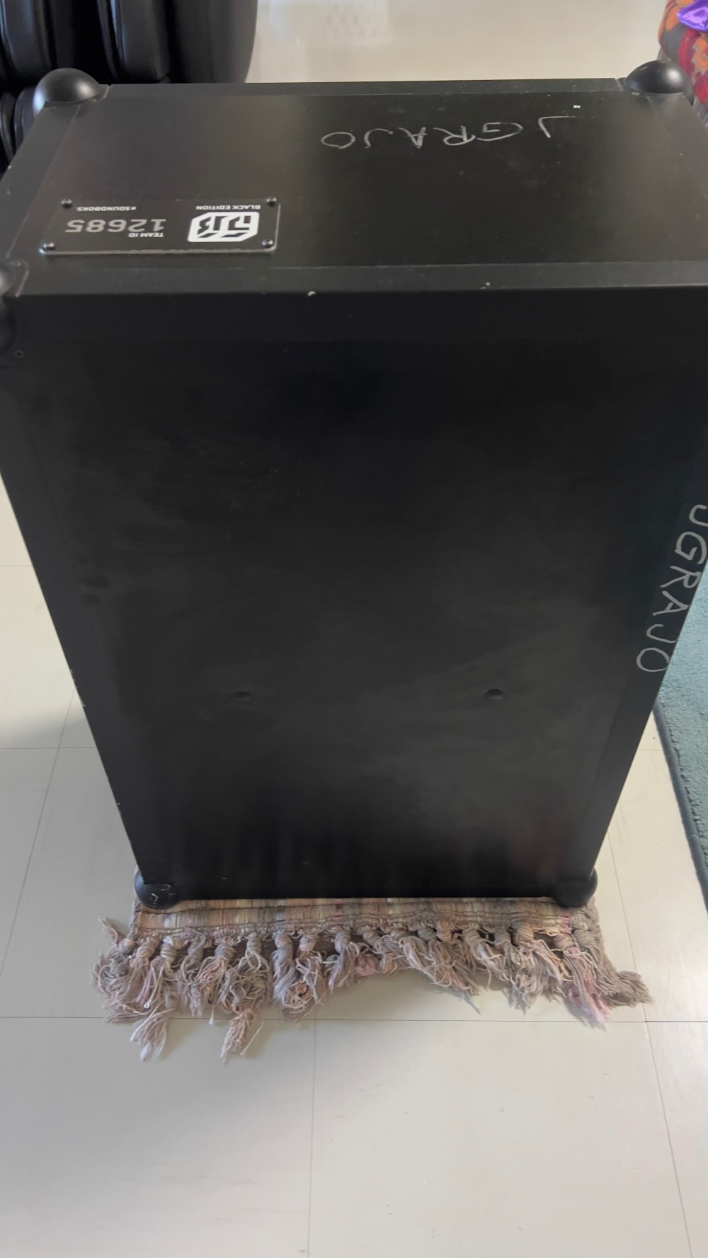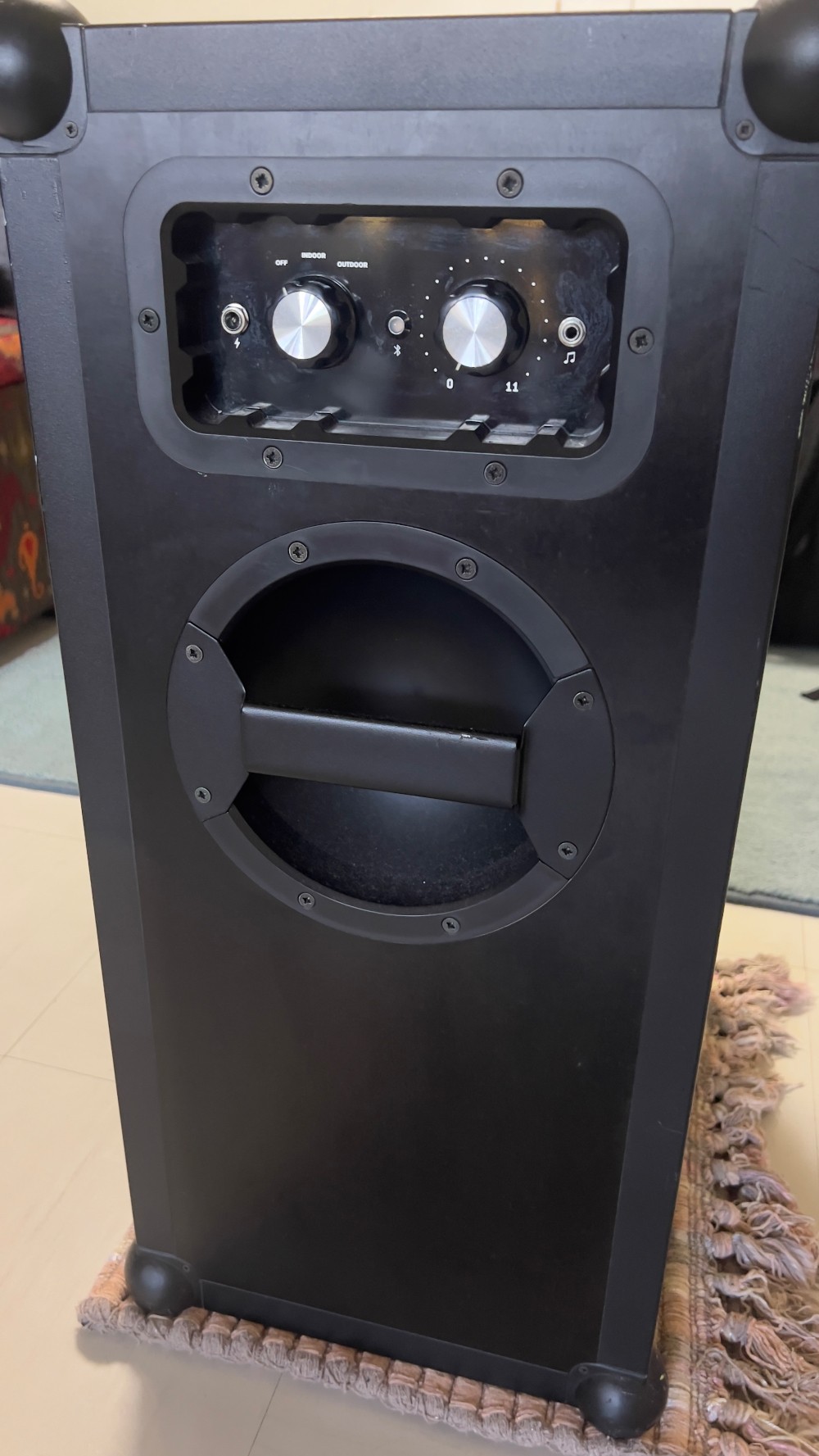 Bluetooth speakers, Soundboks, up to 116 decibels. Portable, water resistant, rugged. Various connections for earphone, microphone. Rechargeable.